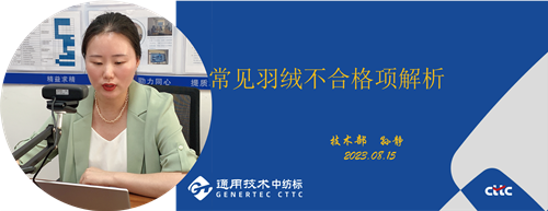 8月15日,由通用技術(shù)中紡院中紡標(biāo)檢驗(yàn)認(rèn)證股份有限公司(以下簡稱“中紡標(biāo)”)和國家紡織制品質(zhì)量檢驗(yàn)檢測中心聯(lián)合主辦的2023'CTTC中紡標(biāo)云課堂線上培訓(xùn)成功舉辦。中紡標(biāo)檢測事業(yè)部技術(shù)部技術(shù)負(fù)責(zé)孫靜與深圳公司質(zhì)量技術(shù)部負(fù)責(zé)人劉鵬分別在北京、深圳兩地?cái)y手,與近200家紡織服裝企業(yè)相約“云”上,共同開啟本次培訓(xùn)。