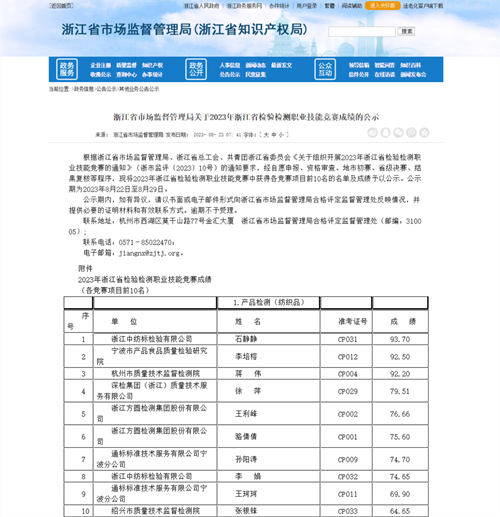 喜訊丨中紡標浙江公司在2023年浙江省檢驗檢測職業技能競賽中喜獲佳績